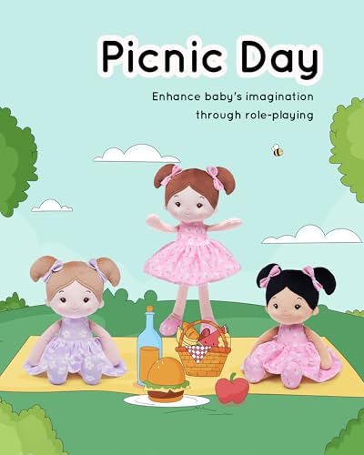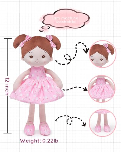 LeyaDoll Soft Baby Doll Toys (12”), My First Baby Rag Doll for 1 Year-Old Girl Birthday Gift, Christmas Plush Toys Gift for Toddler Kids Infants -FloraBelle(Pink)