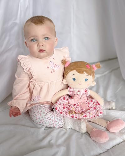 LeyaDoll Soft Baby Doll Toys (16”), My First Baby Rag Doll for 1 Year-Old Girl Birthday Gift, Christmas Plush Toys Gift for Toddler Kids Infants-Strawberry-Girl