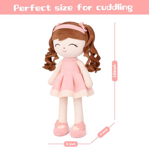Soft Baby Doll Toys 16inch, Baby Rag Doll for One Year Old Girl Birthday Gift,Princess Style Plush Toys for Toddler Kids Infants (Pink)
