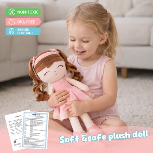 Premium Quality & Ultimate Safety:Crafted from ultra-soft, skin-friendly fabric, this adorable rag doll offers a gentle touch perfect for cuddling. To ensure safety, all facial features are exquisitely embroidered, making the doll completely free of hard or sharp parts. Thanks to the reinforced stitching, it is highly durable and resistant to pulling or tugging, standing the test of time as your child’s loyal companion.