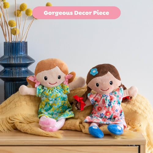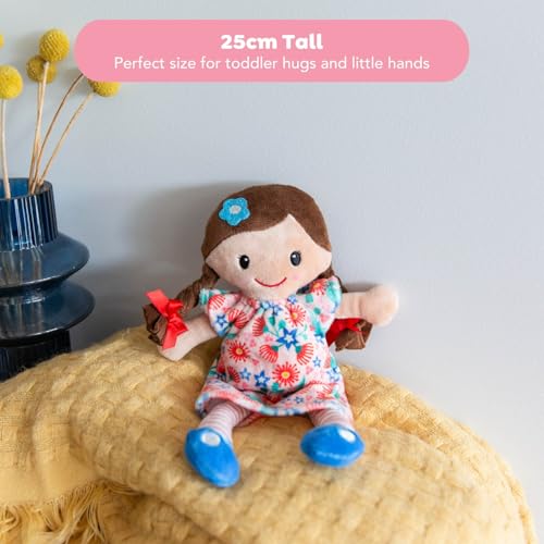Tiger Tribe Matilda Rag Doll 10-inch Brown Hair Soft Velboa Fabric Flower Dress Ideal Newborn Toddler Cuddly Toy Safe Non-Toxic Machine Washable