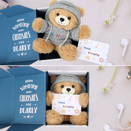 Osacoe Big Hugs Teddy Bear Stuffed Animal with Gift Box Removable Hoodie for Comfort and Love, for Kids, Women & Men in Tough Time, Get Well Soon Gifts Basket with Beautiful Gift Greeting Card