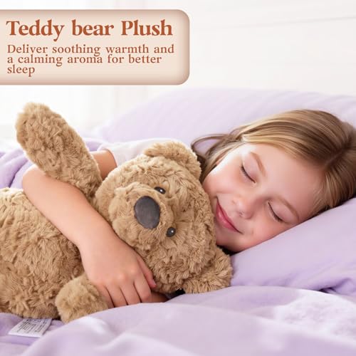 Teddy Bear Stuffed Animals, Microwavable & Weighted Stuffed Animal, Brown Curly Plush for Warmth & Comfort, Heatable Coolable Lavender Scent Toy, Cute Soft Plushies Gift for Children Boys Girls Adult