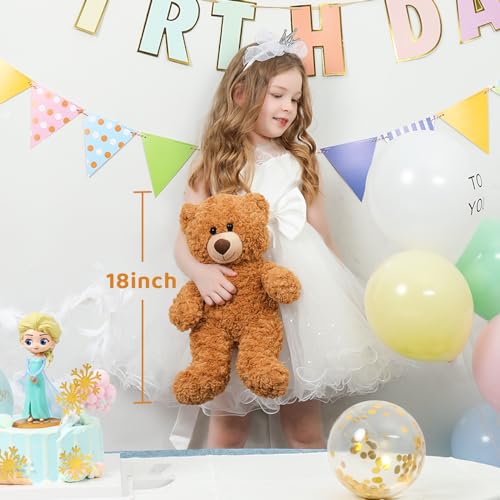 Small Adorable Teddy Bear: This brown teddy bear 18 Inches ears to foot. 18 inch teddy bear perfect for hugging and easy to take it anywhere,play with him at home, take him on your outdoor adventures, hold him tight during storytime and bedtime.Also a best choice for decorating your house or playroom