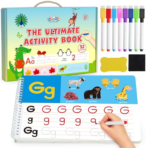 BenBen Preschool Learning Activities, 52 Pages, Tracing Books for Kids Ages 3-5, Kindergarten Workbooks, Toddler Writing Practice, Pre K Busy Book Educational Toys, Autism Learning Materials