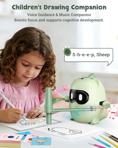 【Voice Guidance & Music Companionship】Friendly voice prompts and soothing background music make drawing more enjoyable. With its supportive drawing robot companion, kids stay engaged and inspired, sparking imagination, boosting creative confidence, and building self-expression courage while improving focus, hand-eye coordination, and fine motor skills.