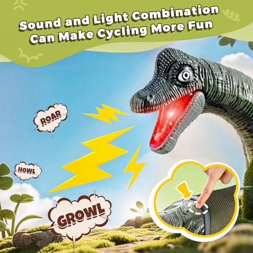 Dinosaur Realistic Texture Design:Dinosaur ride on toy.The realistic texture design can enhance children’s sense of touch, and with three different sound and light effects, riding on our realistic dinosaur toys allows children to be immersed in the adventure! It is very suitable for children to play, combining fun and imagination perfectly, bringing endless excitement. Children will love our special toddler riding toy.