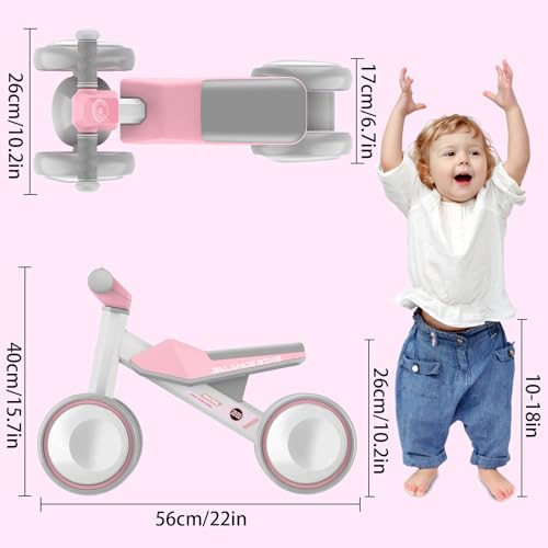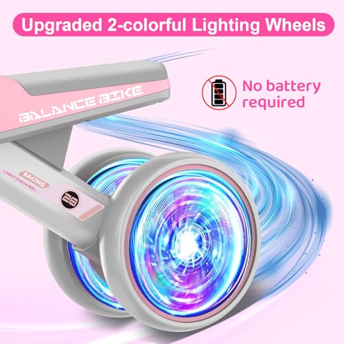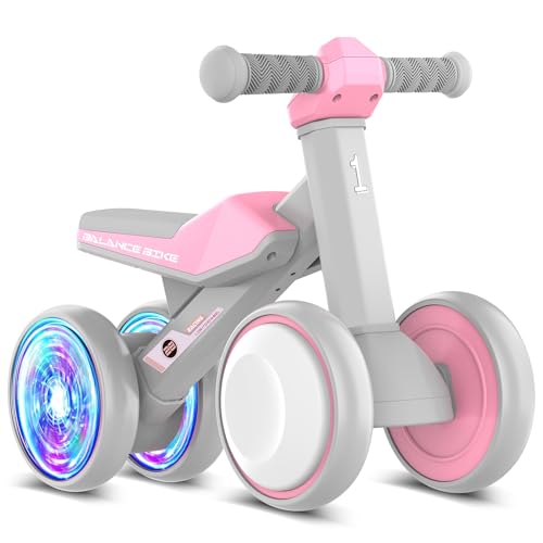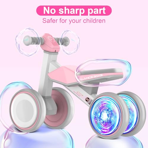 ESPRAY Colorful Lighting Baby Balance Bike Toys for 1 Year Old Girls Gifts, Toddler First Bike 12-24 Months with Adjustable Soft Seat, 4 Silent Wheels Ride on Toy, Perfect First Birthday Gift