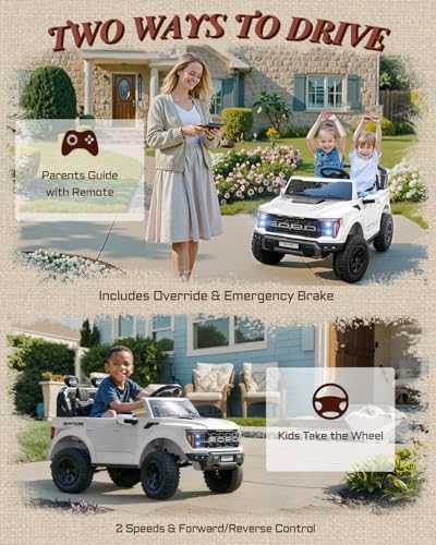 Officially Licensed by Ford: Your little driver will feel like a true truck owner behind the wheel of this officially licensed Ford F-150 Raptor. Designed with authentic details—from the bold Raptor-specific front grille and working LED headlights to lifelike horn sounds, a rear trunk, and dual locking doors—this 24v ride on toys for kids delivers a realistic, confidence-boosting driving experience your child will love.