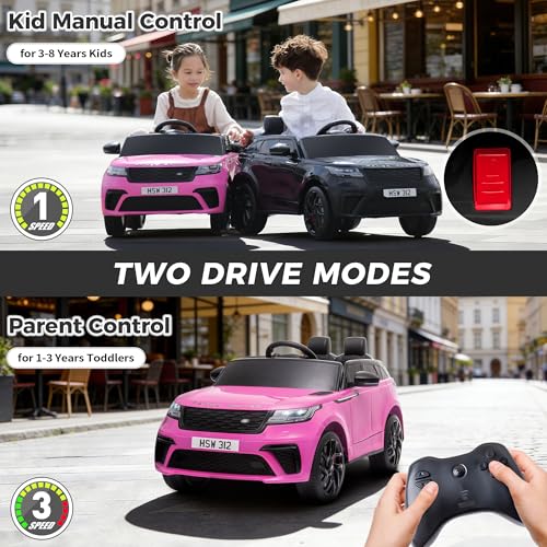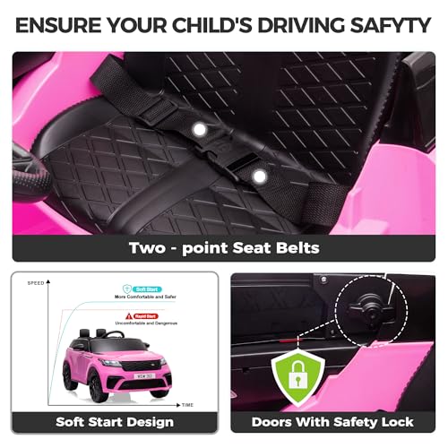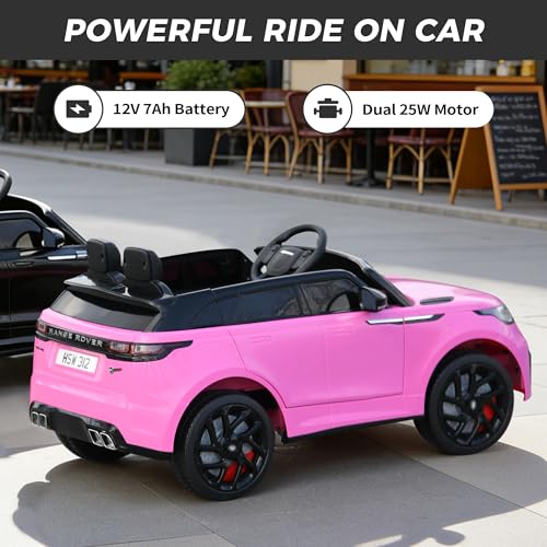 Licensed Land Rover Velar Kids Electric Ride On Car by TOBBI, Toddler 12V Battery Powered 4 Wheeler Driving Vehicle Toy with Remote Control/Safety Belt/Horn & LED Lights for Children Under 8-Pink