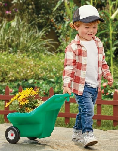 Little farmers will love to haul their harvests around with this toddler Tractor & Cart set. Powered by its foot-to-floor movement design and a working steering wheel, this tractor encourages hours of imaginative play and the development of large motor skills. The included cart attaches easily to the back of the tractor and can carry your child’s favorite toys, gardening supplies, and more. The tractor and cart both feature durable tires that last, ensuring this set will be a longtime favorite toy. Consumer Note: maximum weight is 50 lbs.