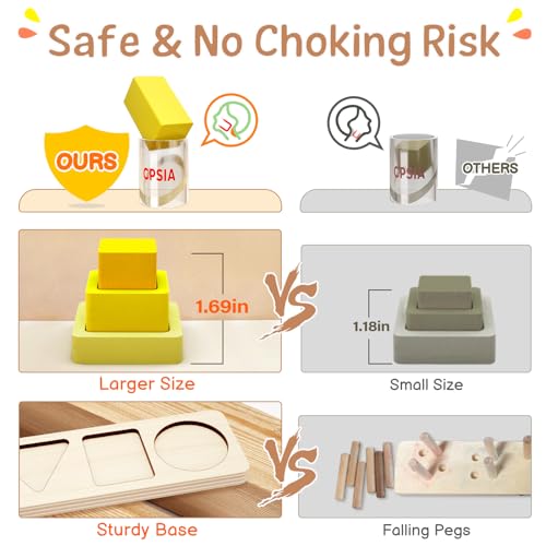 PEBIRA Montessori Toys for 1 2 3 Year Old Boys Girls Toddlers, Heightened Peg-Free Wooden Stacking Toys, Shape Sorter Learning Toy, Birthday Gift for Baby Kid Age 1-4 Preschool Toy, Various Game Play