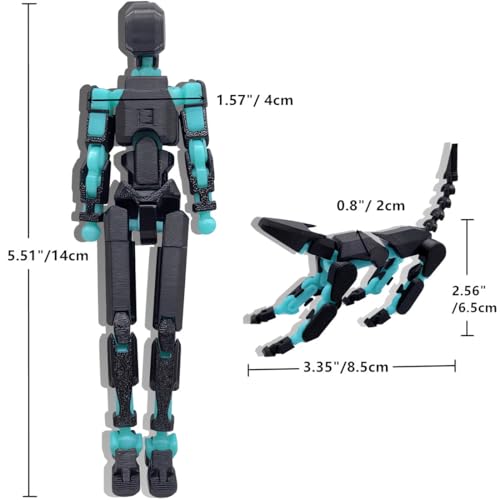 T13 3D Action Figures Set Titan 13 Action Figure Dummy 3D Printed Robo Multi-Jointed Movable Toy with Full Articulation for Collectors Desktop (Assembly Completed Black Blue Figure + Dog)