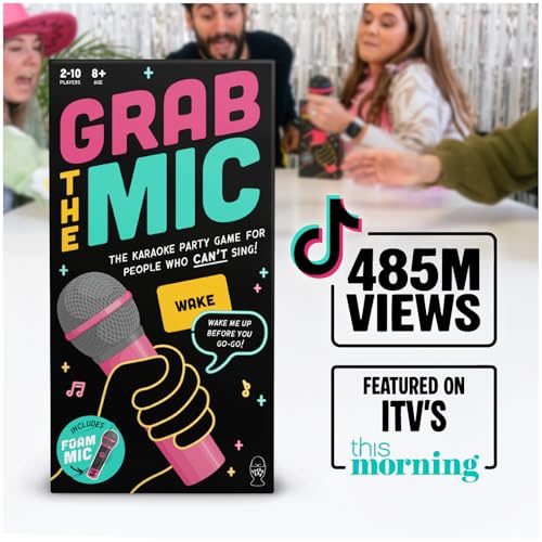 Lucky Egg Official Grab The Mic – Family Karaoke Board Game w/Foam Mic, 8+ Ages, 2-10 Players – Games for Bad Singers w/ 240 Lyrics (120 Cards) (First Edition)