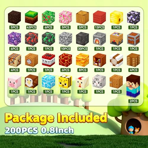 200PCS Magnetic Building Blocks 0.8inch STEM Toy for Kids 3+ Toddler Educational Construction Gift for Boys & Girls (Forest-200pcs)