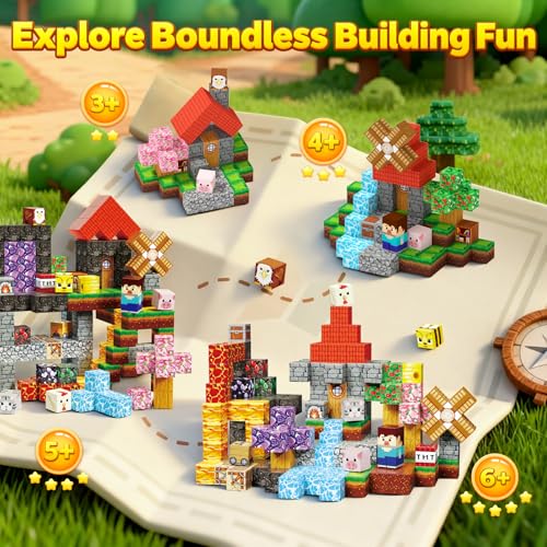 Safe & Travel-Friendly: Each 0.8×0.8×0.8 inch magnetic cube fits tiny hands ages 3+ perfectly—easy to grasp, stack, and assemble independently. Compact design makes it ideal for car rides or plane trips. Stable builds mean no frustrating collapses mid-play!