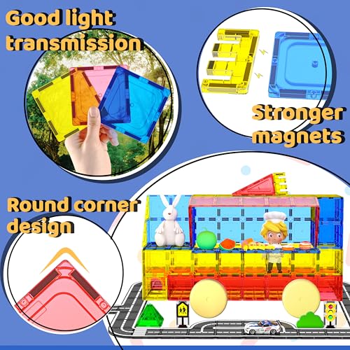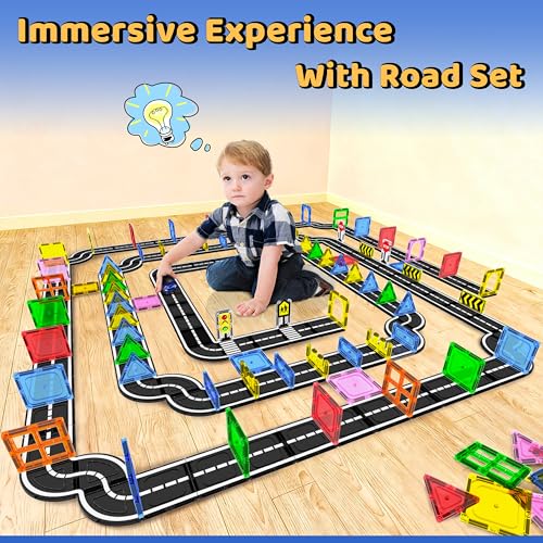 Magnetic Tiles – Road Set, Magnetic Building Blocks, Preschool Montessori Toys Gift for 3+ Year Old Boys and Girls, Sensory Christmas Toys for Kids Aged 3-5 and 4-8, Ideas for Toddler with Autism