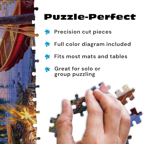Buffalo Games – Canoe Lake 1000 Piece Puzzle for Adults – Jigsaw Puzzles – Darrell Bush Cabin Sunset Artwork with Poster – Challenging Outdoor Nature Scene