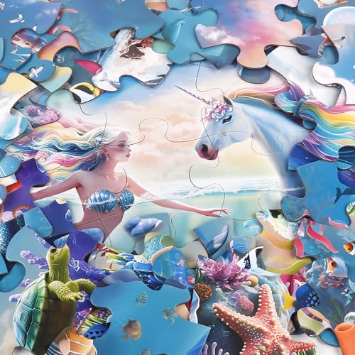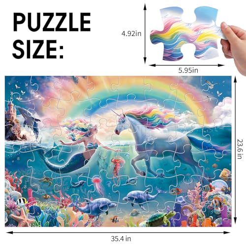 Great Gift Idea:Measuring 35.4×23.5 inches when fully assembled, the puzzle offers an ideal size for collaborative play with friends and family.It comes in a gift box for convenient portability and storage.With its charming mermaid and unicorn theme, it makes a wonderful gift for children’s birthdays, Christmas, Easter ,or any special occasion. Perfectly suited for kids aged 3-8 who love dreaming about the magical underwater world