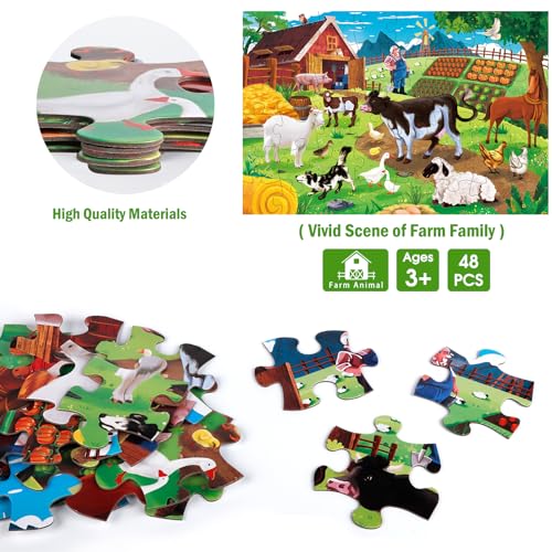 Jumbo Floor Puzzle for Kids,Farm Animals Jigsaw Large Puzzles,48 Piece Barn Puzzle for Toddler Ages 3-5,Children Learning Preschool Educational Toys,Birthday Easter Gift for 4-8 Years Old Boy and Girl