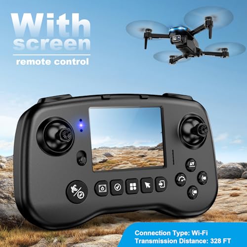 Drone with Camera – Drone with Screen on Controller for Beginners, Foldable Remote Control Quadcopter with Gesture Control, 3D Flip, One Key Start, Emergency Stop, 2 Batteries, Easier to use