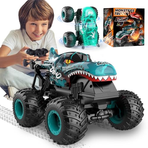 MONSTER TRUCKS FOR BOYS AGE 4-7: This Remote Control Monster Truck features astonishing stunt capabilities and a cool dinosaur appearance. Young drivers can maneuver the remote-controlled car to overcome any obstacles and perform a range of epic stunts, including 360° spins, upright walking, drifting, and more, allowing them to fully experience the thrill and excitement of the racecourse!