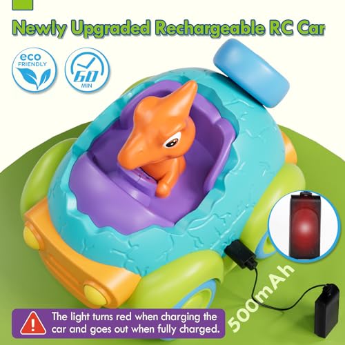 Lehoo Castle Remote Control Car for Toddlers, Rechargeable RC Cars for Toddler Toys 2-3, Dinosaur Toys for Ages 2-4 with Lights & Music, 2 3 4 Year Old Boy Toys