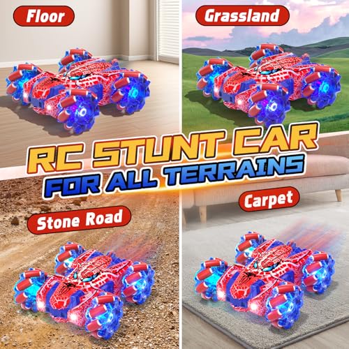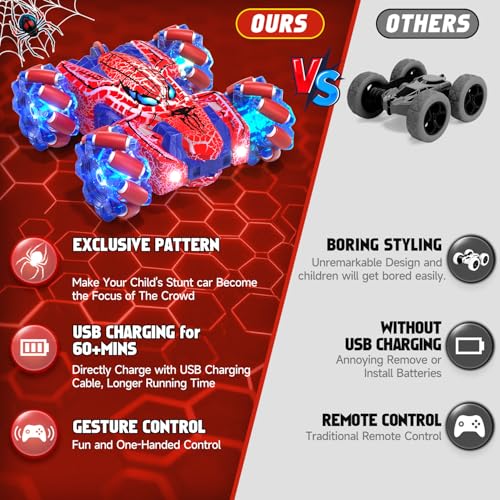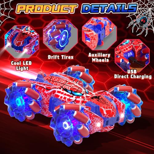 Spider Gesture Sensing Remote Control Car, Double Sided RC Cars with Full-Body Light, 2.4GHz Hand Controlled Rechargeable RC Stunt Car Toys for Boys 4 5 6 7 8 9 10 11 12